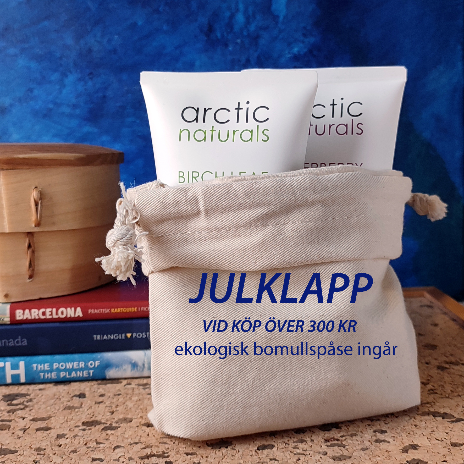 Handla Arctic Naturals eco-kosmetik och få en ekologisk bomullspåse som julklapp. Perfekt som presentpåse eller förvaring av dina favoritprodukter.